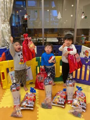 サンタさんからプレゼントを受け取り、子供たちは大喜びでした。