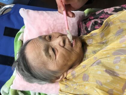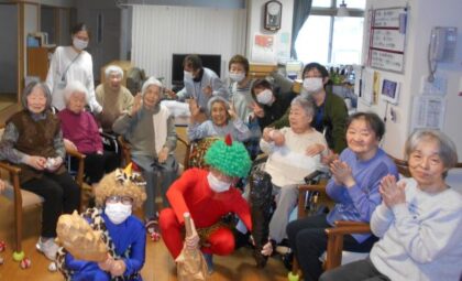 フェイスシートとマスクで完全防備の鬼登場!「鬼いやだよ…豆まきしないよ」って話されていた利用者様も、下に落ちた豆まで拾い投げている方も…(笑)