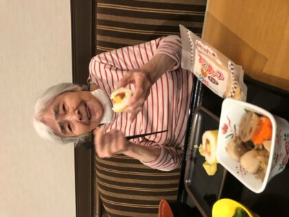 鬼が登場した途端、入居者様も「鬼は外、福は内!」と大きな声で叫び、玉を投げました!