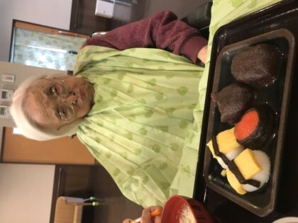 本日は節分ですので毎年例年通り倶有では「助六寿司」を昼食に提供しております。