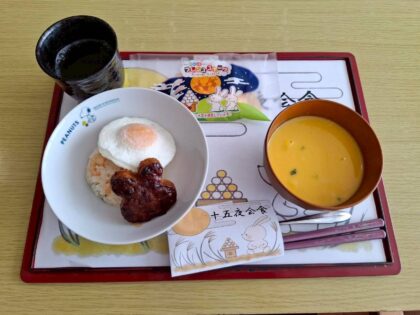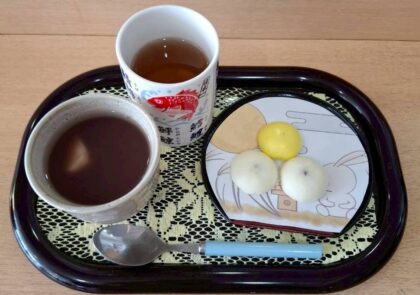 おやつにはお月見団子と手作りのおしるこをいただきました