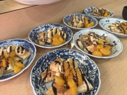 おやつにはお月見団子と手作りのおしるこをいただきました