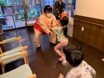 施設長が待ち構えていて園児vs施設長で