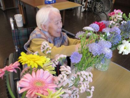 利用者様と一緒に花瓶にお花を生けました(*^^*)