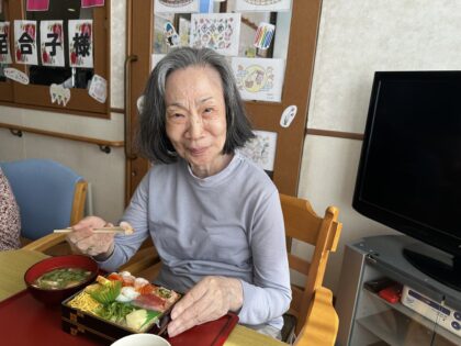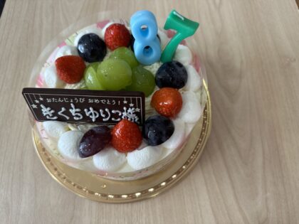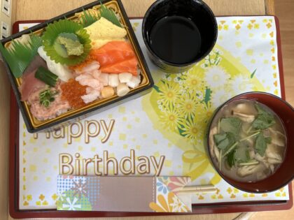 フルーツ沢山のケーキと海鮮チラシでお祝いしました🎉