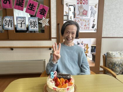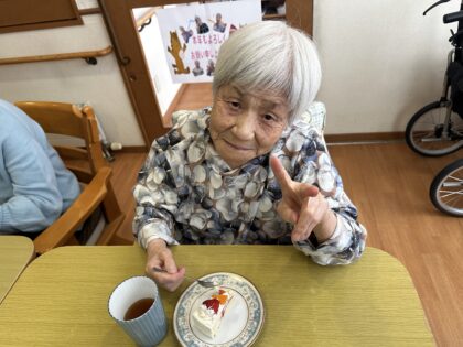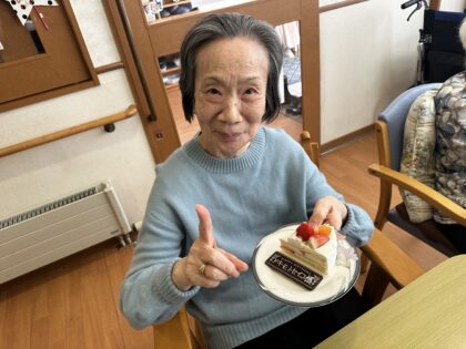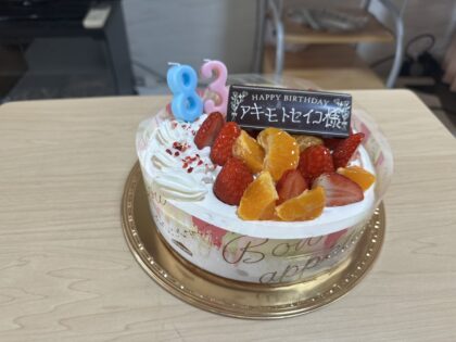 ケーキはイチゴとみかんがたくさん乗ったもので
