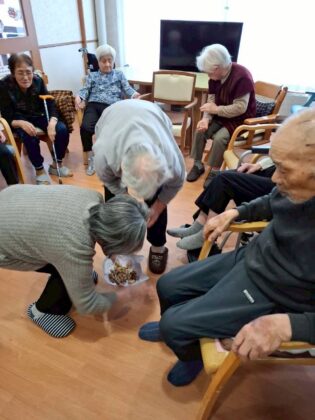 おやつには赤鬼や、青鬼、おたふくの形をした上生菓子をいただきました。